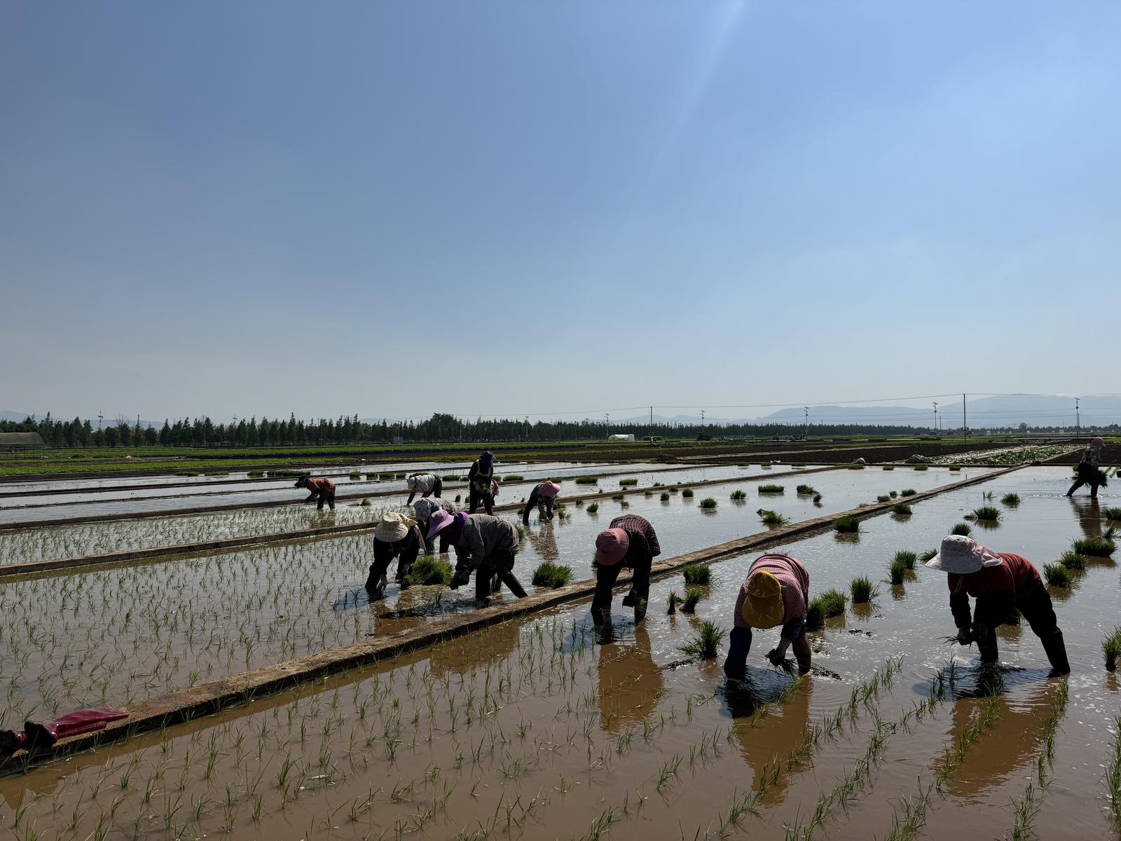 农田染新绿,水稻插秧忙。连日来,在位于杞麓湖南岸的秀山街道六一社区,随处可见农户抢抓农时插秧的忙碌景象。