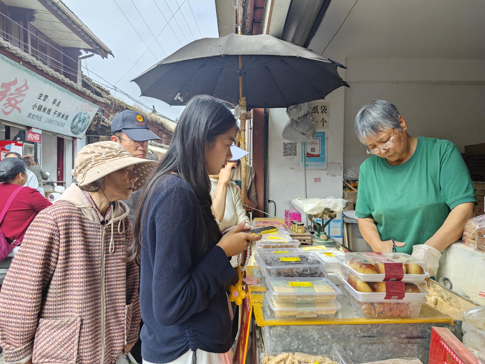 10月4日一大早,通海的古城已热闹起来。青石板路上,来来往往的游人或驻足拍照,或随性漫步,休闲惬意地体验着小城的慢生活。财神街的多家名优特产店内更是挤满了游客,受朋友圈“打卡”热潮影响,剪子糖、豆末糖等特色美食成了游客的“心头好”,大家争相选购,将通海的“甜蜜味道”打包带回家。就连大街小巷的小吃店门口也早早排起了长龙,罐罐米线、烧洋芋等小吃香气扑鼻,引得游客争相品尝。