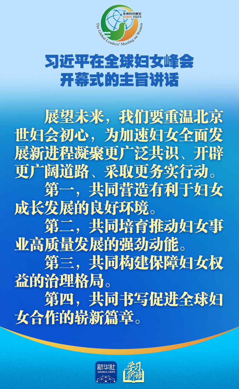 10月13日上午,国家主席习近平在北京国家会议中心出席全球妇女峰会开幕式并发表题为《弘扬北京世妇会精神 加速妇女全面发展新进程》的主旨讲话。讲话金句,一起学习!