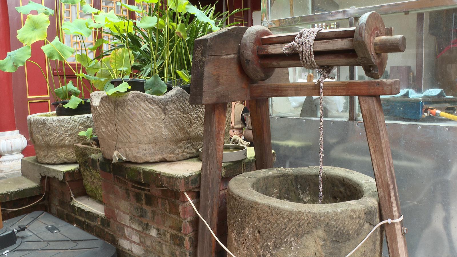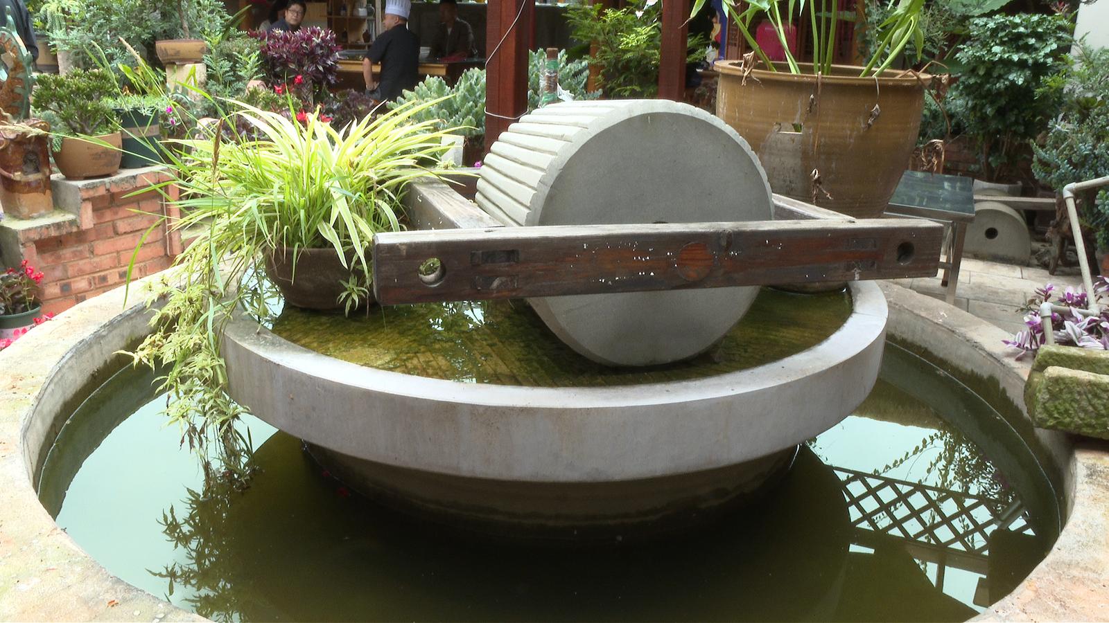 在通海县城三角地饭店,传统农具与现代生活空间实现了完美结合——磨盘石臼改造为特色洗手台,石磙石磨点缀着绿植盆栽,废弃水井成为庭院景观......这些创新改造既保留了农耕文化记忆,又赋予了新的实用功能,让传统农耕文化以更生动的方式融入现代生活,并吸引到了不少食客。