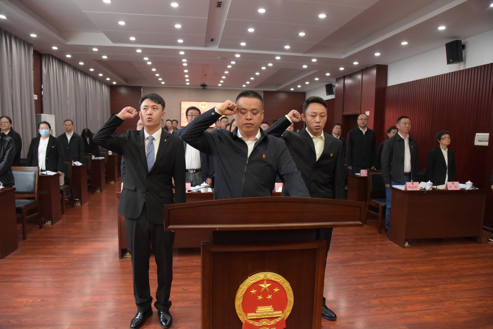 会议依法审议人事任免事项。陈文存为新任命同志颁发任命书,希望新任命同志不断提高综合素质,聚焦主责主业,强化廉政意识与法治观念,立足全县发展大局全面推进工作。新任命同志面对国徽进行了宪法宣誓。