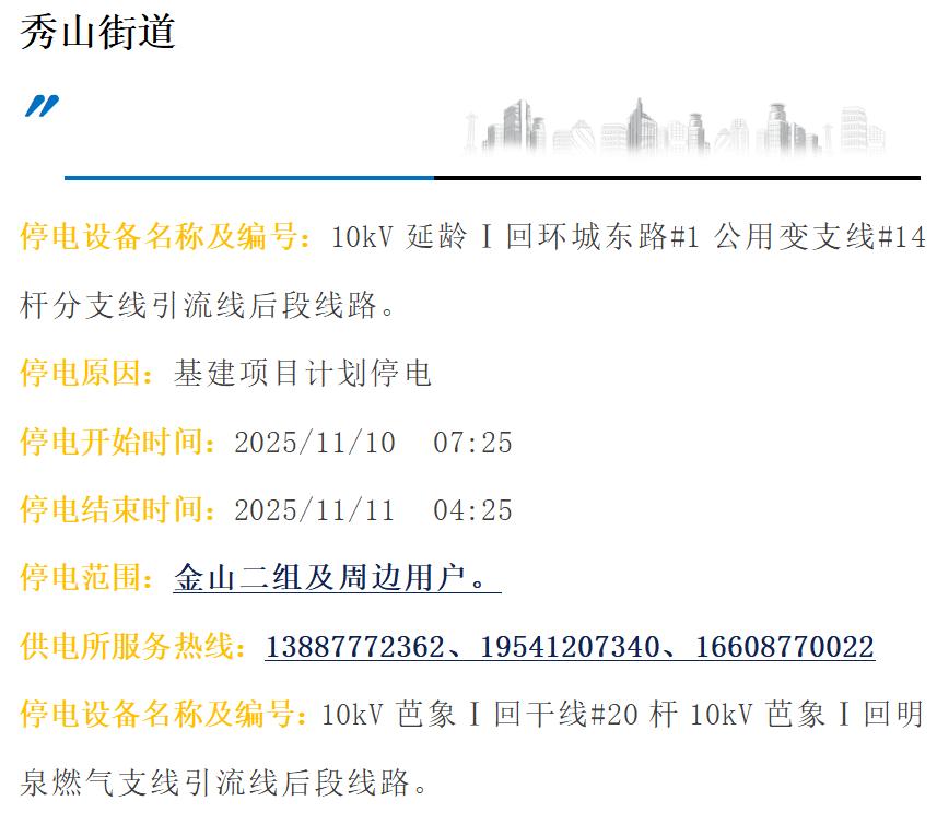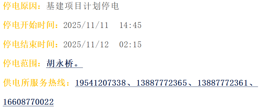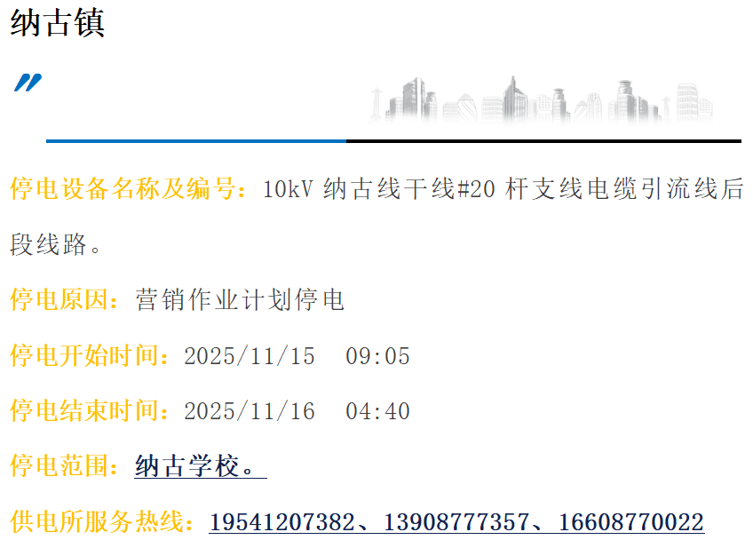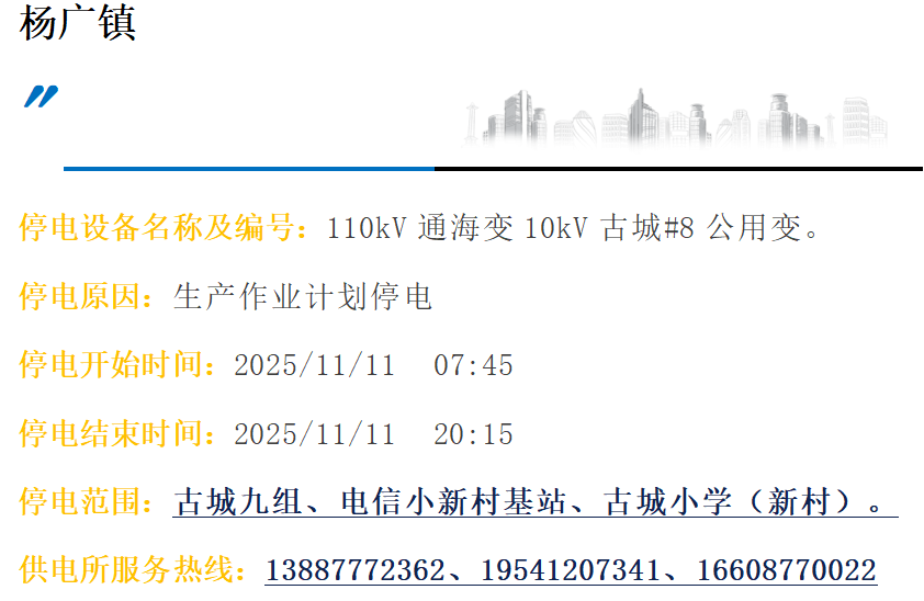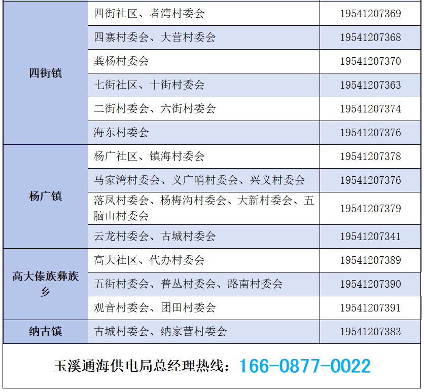 玉溪通海供电局2025年11月1日至15日停电公告
