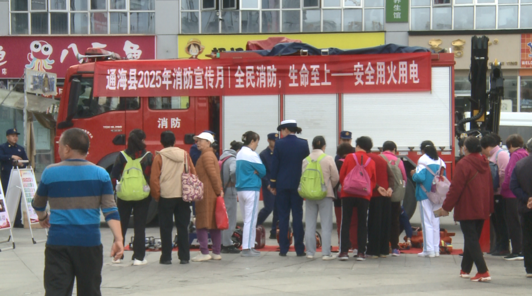 11月7日,通海县消防救援大队联合县公安局、秀山街道、玉溪通海供电局、通海明泉燃气有限责任公司、云南国星能源有限公司通海分公司等多家单位,在县体育场共同启动以“全民消防,生命至上——安全用火用电” 为主题的“119”消防宣传月活动。