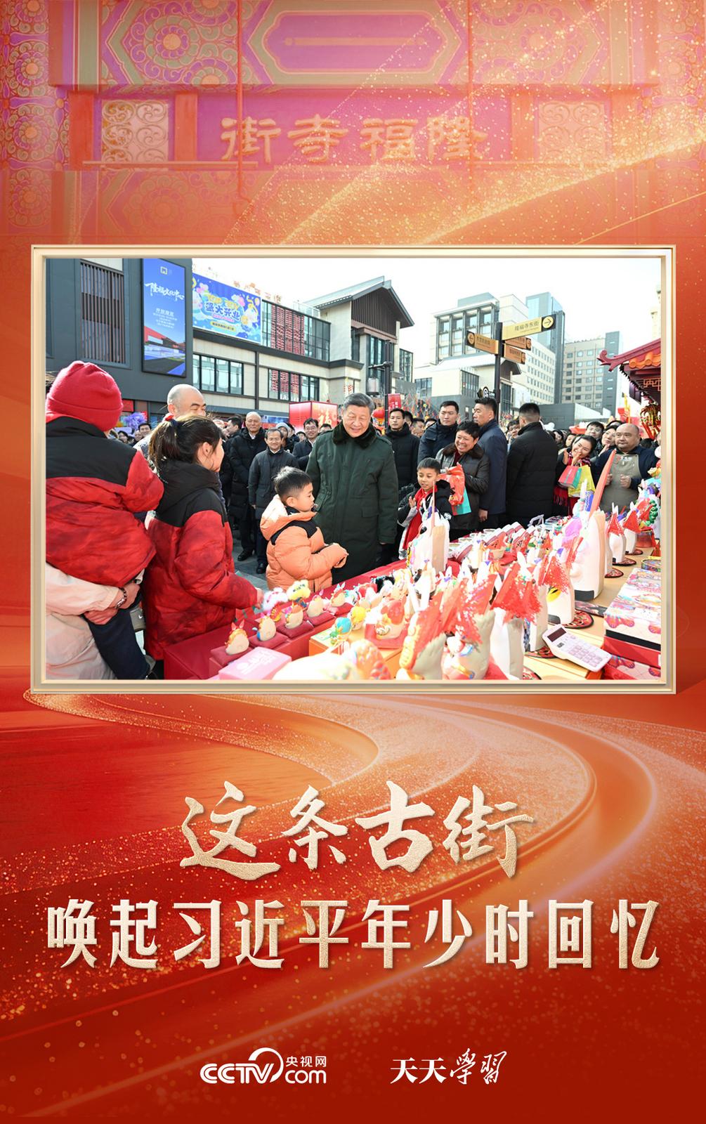 浓浓的年节氛围中,步行街两侧,老字号商品、非遗产品、京味美食等年货摊位一溜排开。糖画、棉花糖、糖葫芦、糖炒栗子、手工布艺、银饰、剪纸、金漆镶嵌……总书记饶有兴致地在一个个摊位前驻足察看。