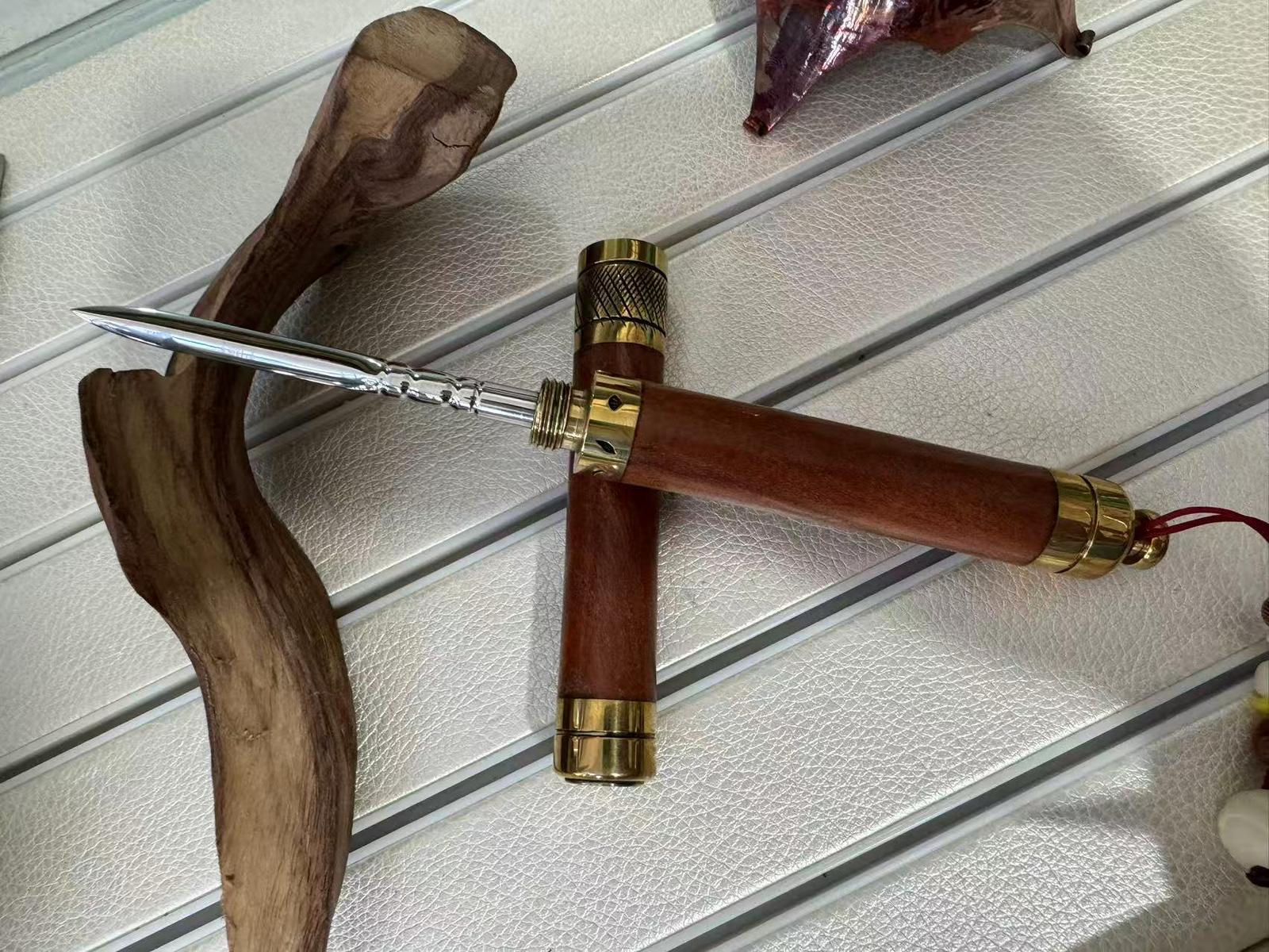 “这次我制作的茶刀能够被海外大学留馆珍藏,是我的荣幸,也是对我的一种肯定,此次赠送的这把茶刀设计灵感来源于少数民族所用的乐器腰鼓,用花梨木黄铜和不锈钢合金的有机组合,把民族文化乐器表现于作品中,整体效果突出,希望海外师生能通过这把小小的茶刀,感受到云南手艺人的温度,了解中国传统工艺的魅力。”纳航章说。