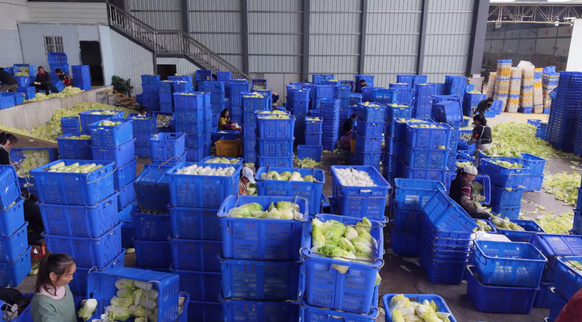 正午时分,云菜集团冷库车间内依旧一片繁忙。近200个专业冷库高效运转,实现日进菜量超5000吨,从新鲜采收、精细分拣到低温冷藏,全流程标准化高效作业,为蔬菜外销锁住新鲜、筑牢品质根基。