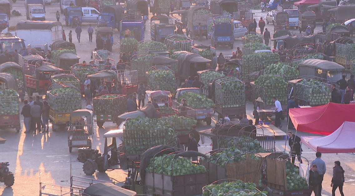 “一天收购5000吨左右,主要销往广西、广东,这段时间“南菜北运”就销到陕西、山西、北京、上海这些地方。”云菜集团负责人溥元说。