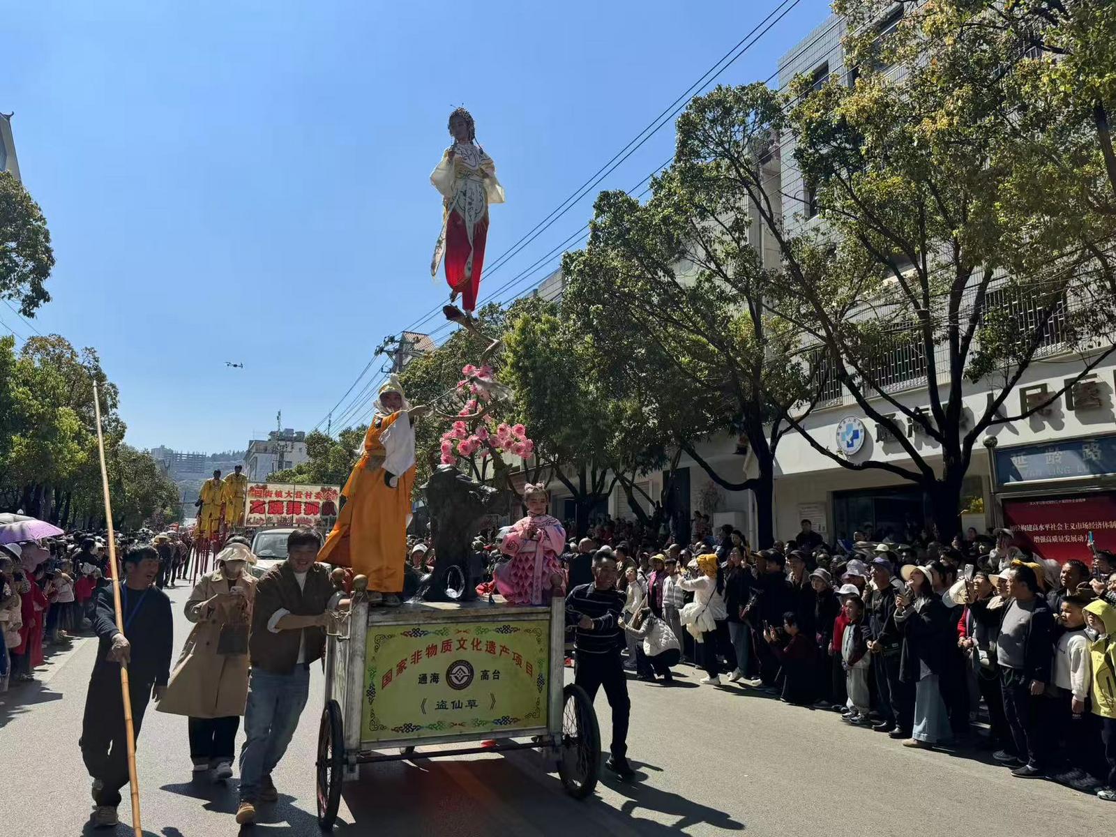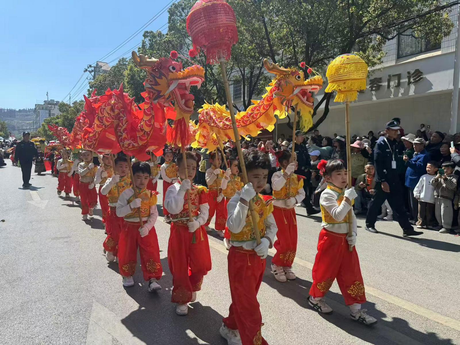 春节期间,特色活动轮番上阵,非遗民俗点燃新春热潮,成为通海春节文旅的最大亮点。2月17日,2026年“金鞍耀新岁.非遗过大年”春节民俗文化地会大巡游暨非遗展演活动在通海古城隆重启幕,一场非遗盛宴惊艳亮相。活动创新采用“动态巡游、节点表演、静态展示”三位一体形式,组建“民族团结、锣鼓震天、经典传奇、人杰地灵、华章美服”五大方阵,28支表演队伍盛装登场,将高台、花灯、舞龙、踩高跷等经典非遗与民间文化深度融合,演员与沿街市民、游客热情互动,年味醇厚、氛围热烈。