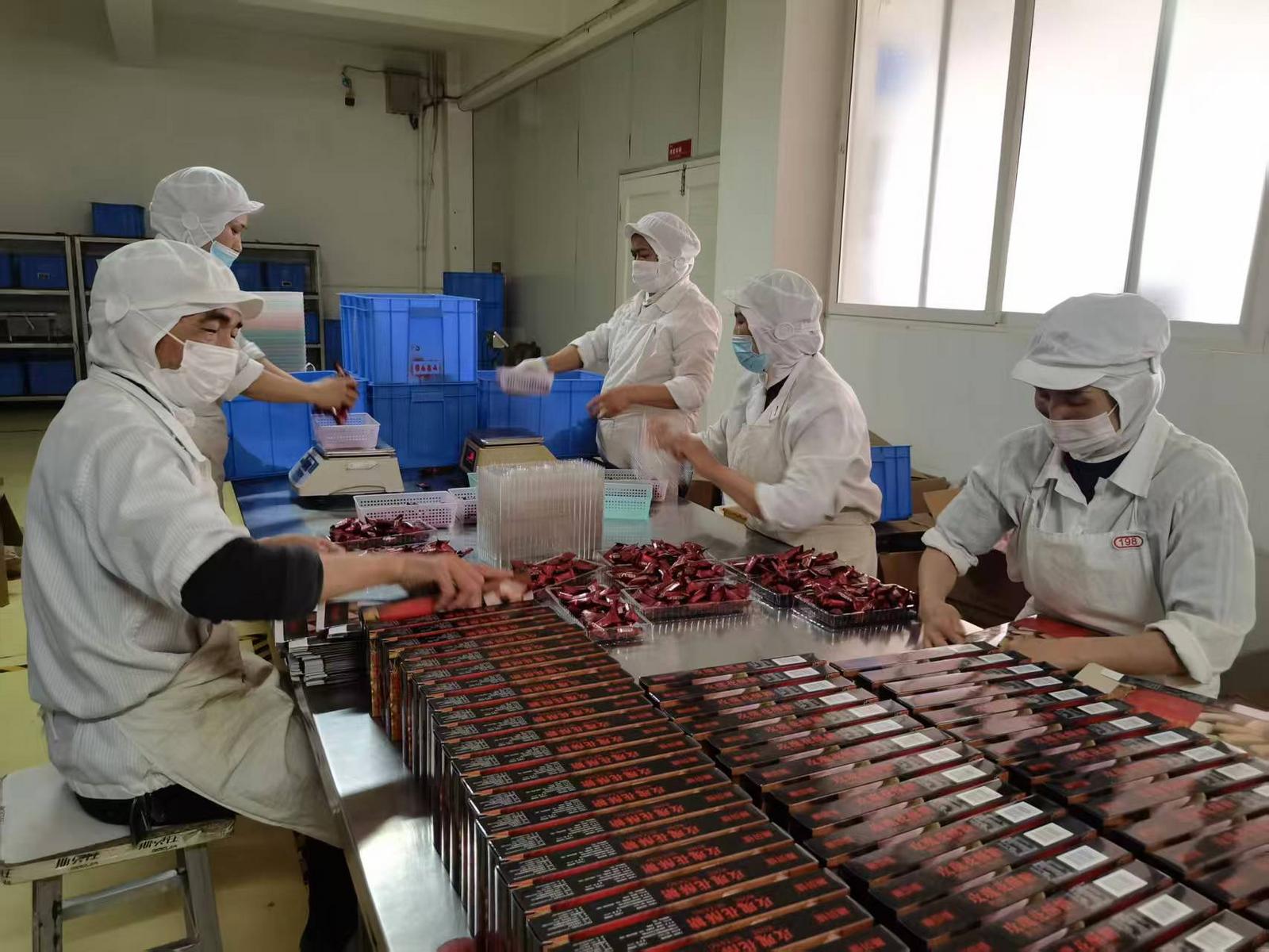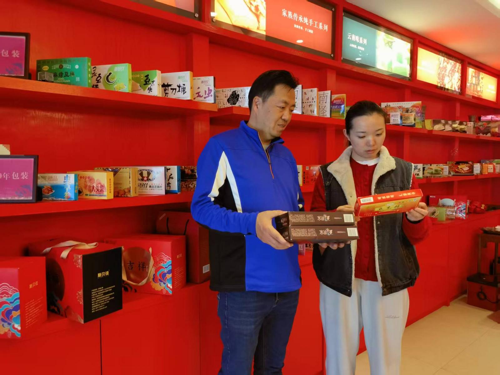 作为云南省首批非遗工坊、省级非物质文化遗产代表性项目——豆末糖制作技艺的传承企业,云南省通海斯贝佳食品有限公司正加紧备战。走进生产车间,玫瑰花香与糖香交织,工人们正熟练地称重、包装、装箱,玫瑰花酥糖、传统豆末糖等产品有序下线,为花街提供充足供给。
