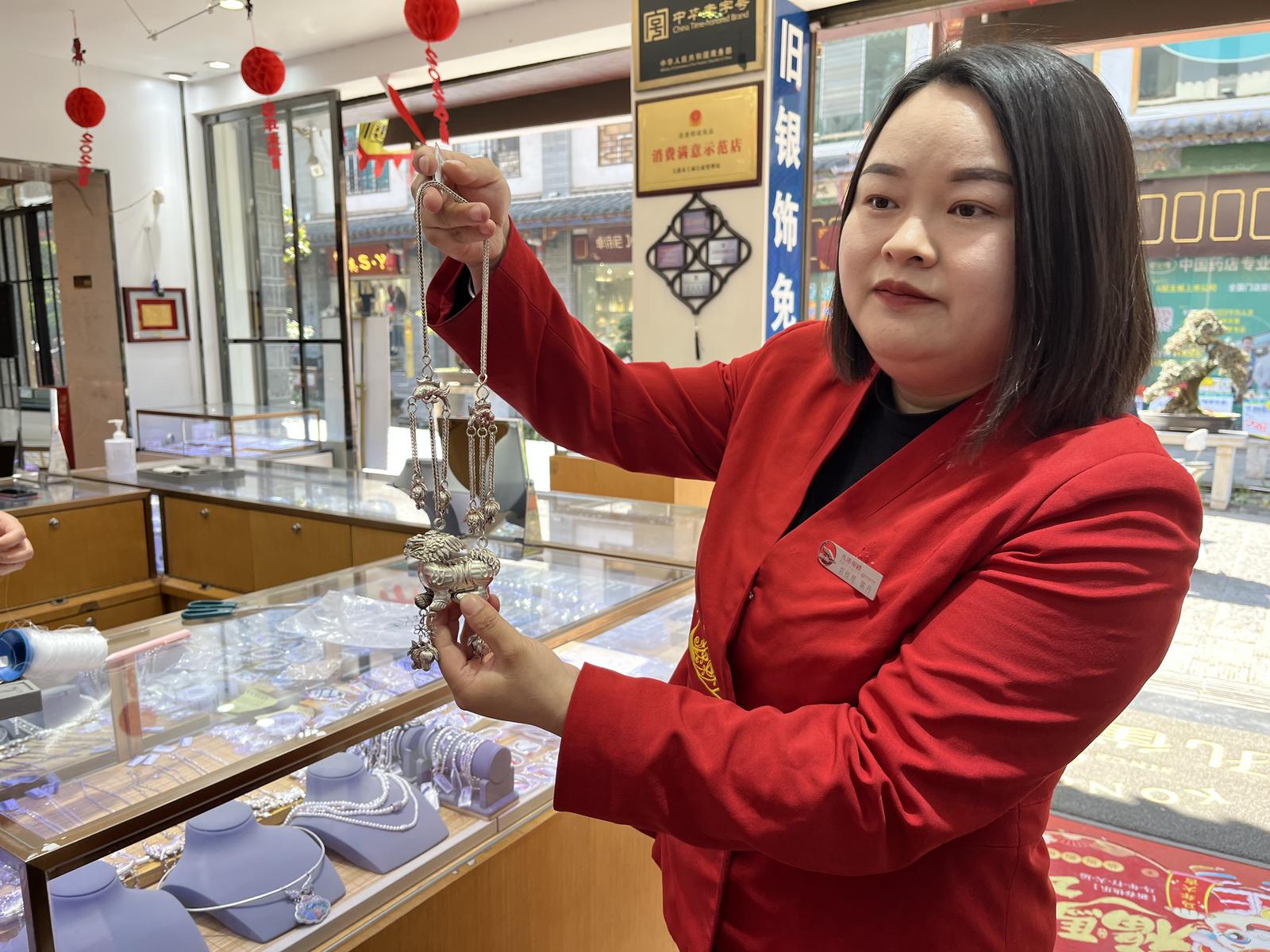 “上一届花街的话,孔雀珠宝的展位还是比较受欢迎的,通过传统的银饰跟现代银饰的一个结合,销量大概是20万到30万之间。今年的话,银饰越来越受欢迎,而且现在银价也涨了,大家对银饰的投资属性更加认可。今年在花街上,有业绩翻倍的信心。”通海孔雀珠宝首饰有限公司门店经理陈丹说。