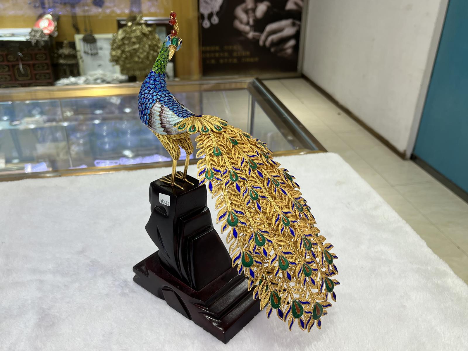 “往年我们只是一只孔雀立在那里,给人们去拍照打卡,那今年,我们在这个的基础上增加了一个顾客的一个体验感,就是做了一个服装跟一个道具。顾客可以换上我们的衣服,坐上我们那个龙椅,进行一个拍照打卡。这种的话,体验感、互动感就更强一些。”通海孔雀珠宝首饰有限公司门店经理陈丹说。