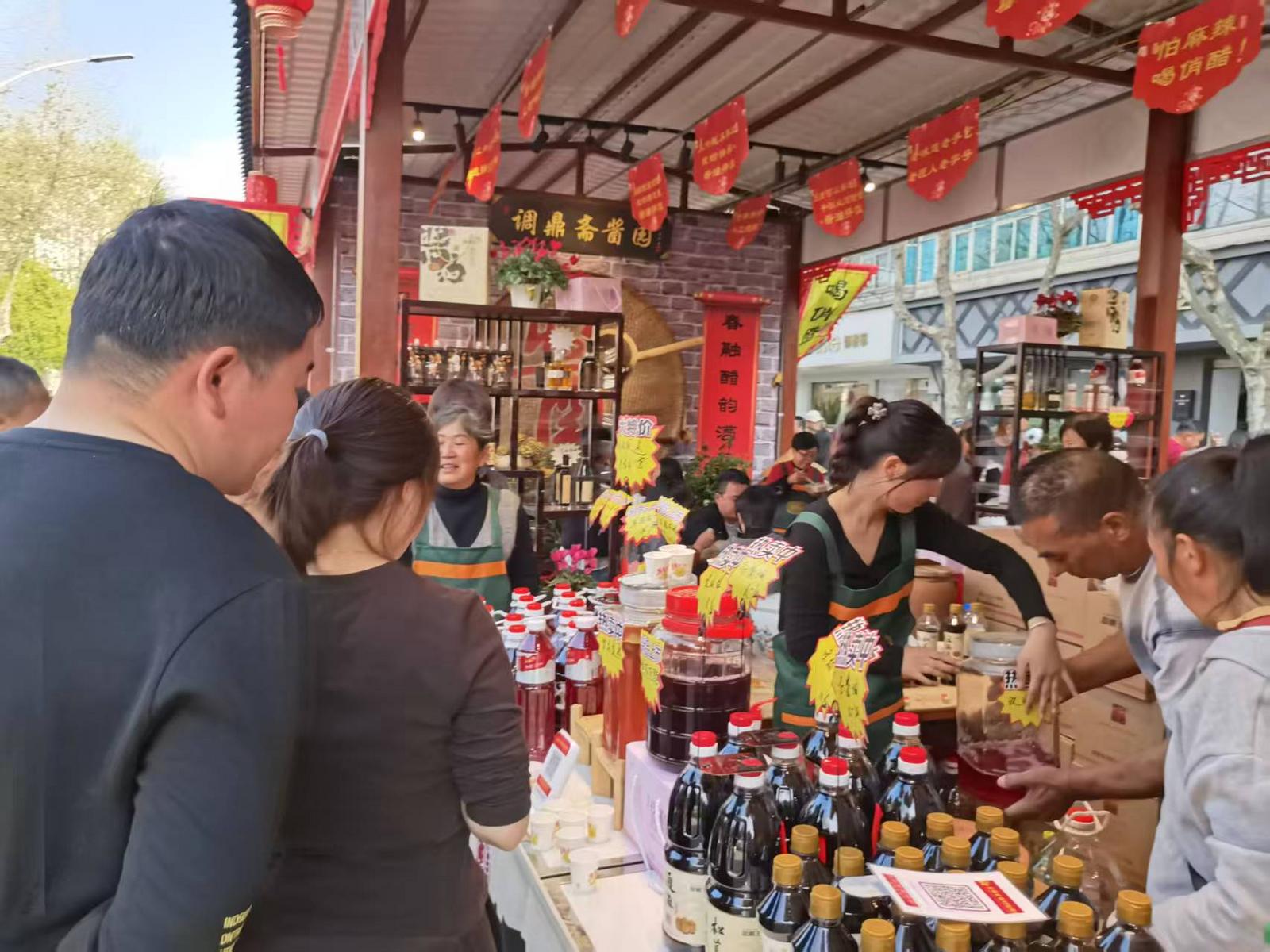 地道老味道,承载浓浓乡愁。在调鼎斋酱园展位,五年陈老酱油从老酱缸中缓缓流出,现场酱香浓郁。本届花街,调鼎斋酱园带来酱油、玫瑰俏醋两大系列20多个单品,还新增黑枸杞俏醋、雪花梨醋两款新品,全方位展示古法酿造技艺。不少市民游客专程前来选购,销售情况超出预期,多款产品一度卖断货。