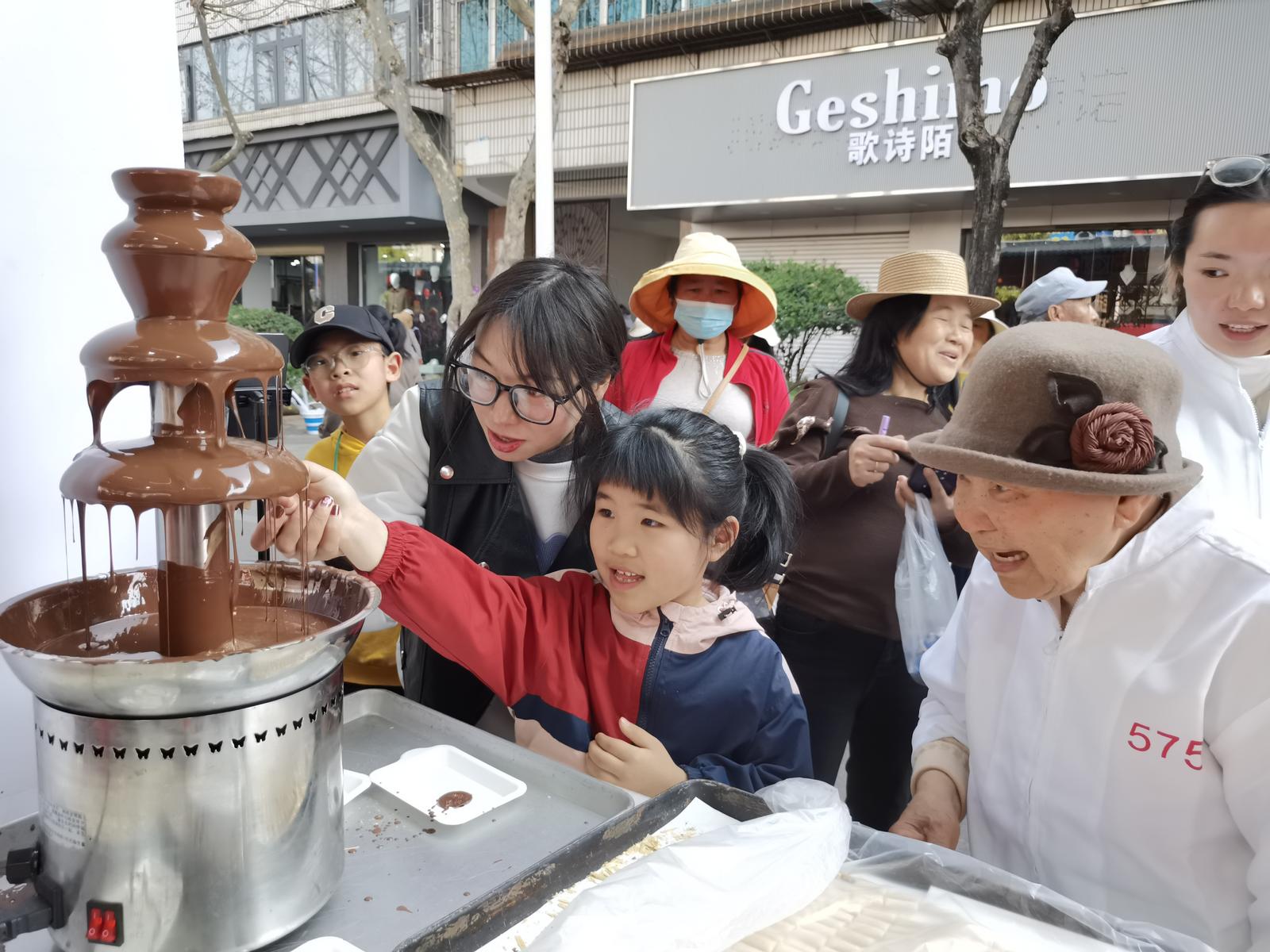 “我做了巧克力豆末糖,我觉得很有趣,欢迎大家来逛花街。这个巧克力豆末糖,我觉得很好吃,我很喜欢。”小游客梅宇呈说。