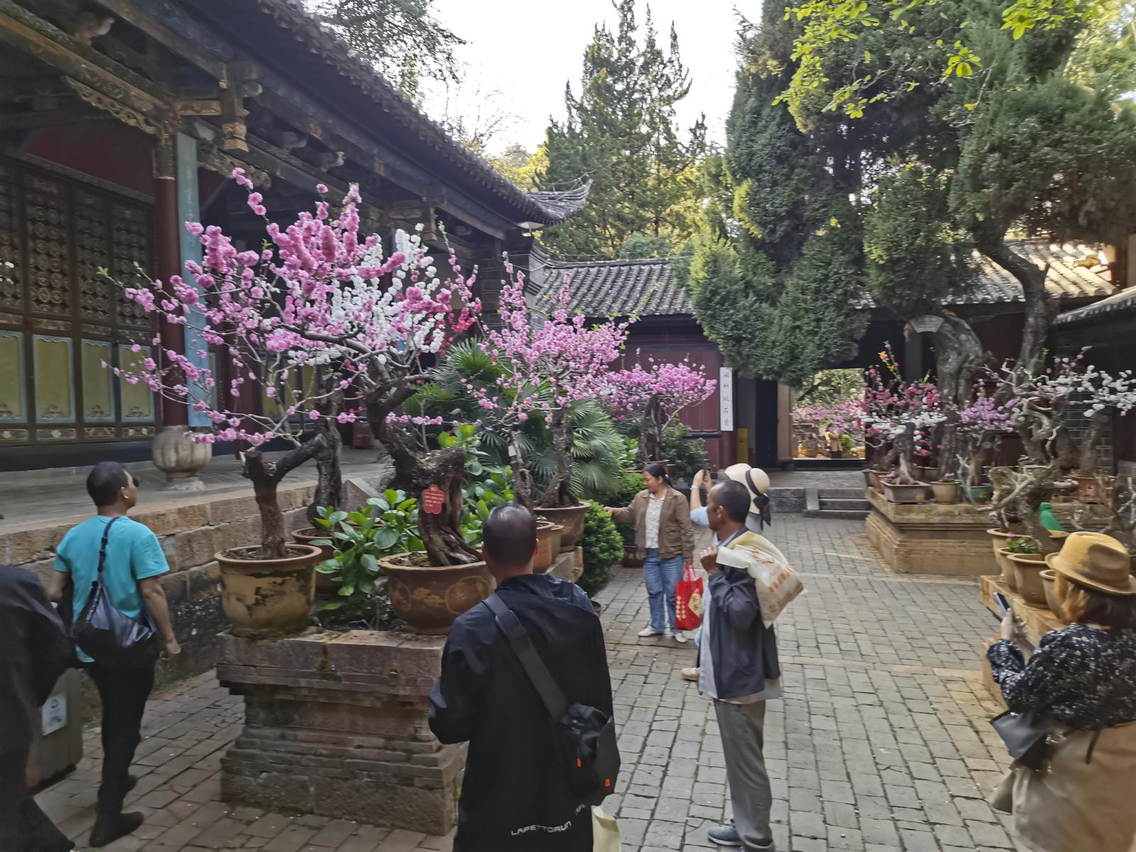 “此地文物盛,花桩百样殊。”桃桩作为通海传统盆景艺术的代表,以独特造型与艳丽花姿成为春日里一道靓丽景观。园内一步一景、满目春光,让人流连忘返。不少游客结伴而来,赏花拍照、漫步休闲,用镜头定格美景,感受春日秀山的魅力。