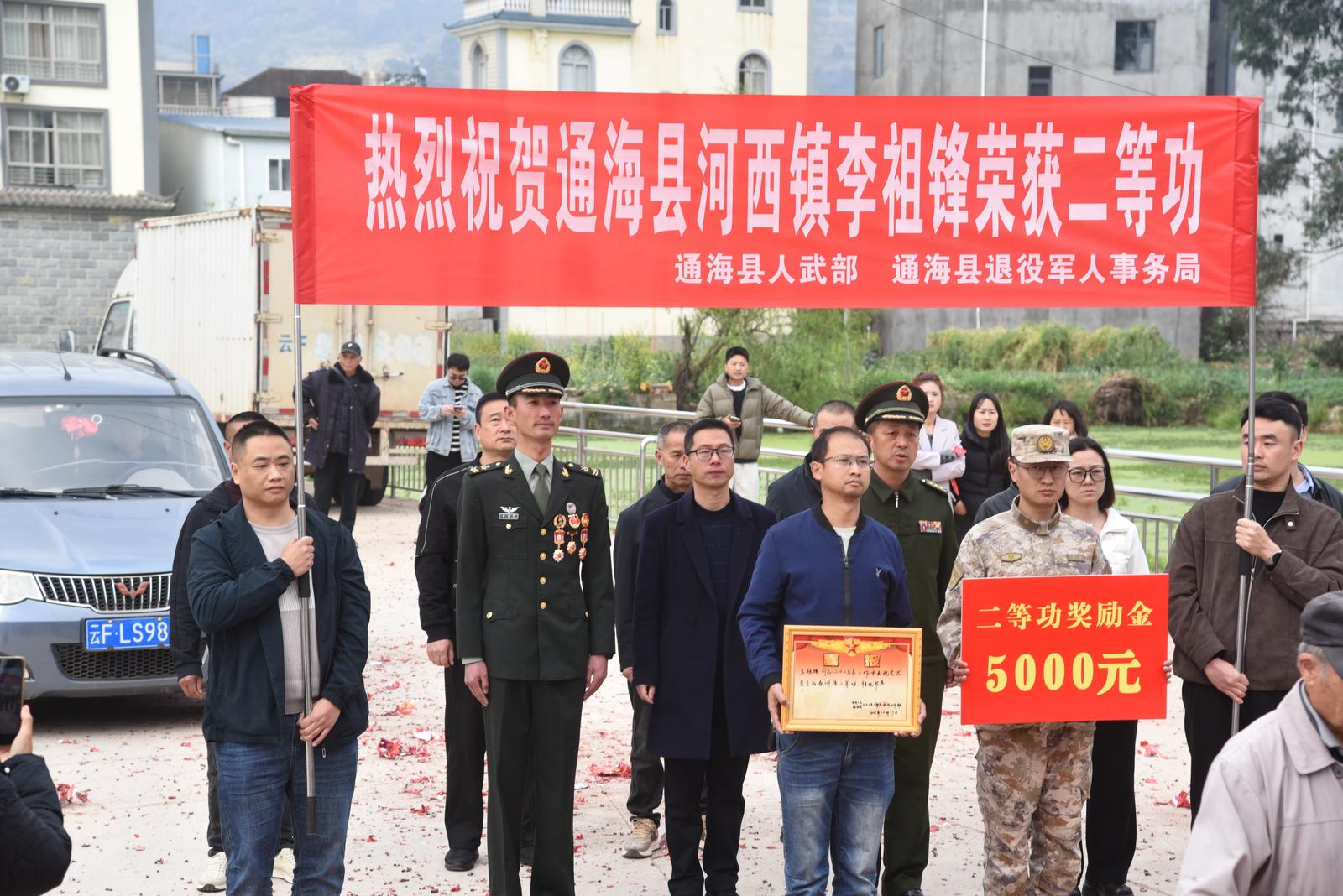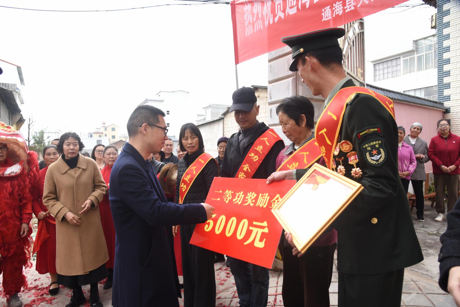 “2026年以来,通海现役军人荣立功勋喜报频传,截止目前,通海荣获功勋人员已达132人,其中:二等功2人,三等功25人。二等功含金量高、来之不易,充分体现了新时代军人忠诚履职、精武强能、担当奉献的过硬作风,既是军人个人的光荣,更是全家的荣耀、家乡的骄傲。作为退役军人事务部门,我们将始终把拥军优属、尊崇军人放在重要位置,坚持把喜报送到家、把温暖送到心、把各项优待抚恤政策落到实,在全社会营造参军光荣、立功光荣、尊崇军人的浓厚氛围,不断增强军人军属的荣誉感、幸福感和归属感,激励更多优秀青年投身军营、报效国家。”通海县退役军人事务局局长陈太汝说。