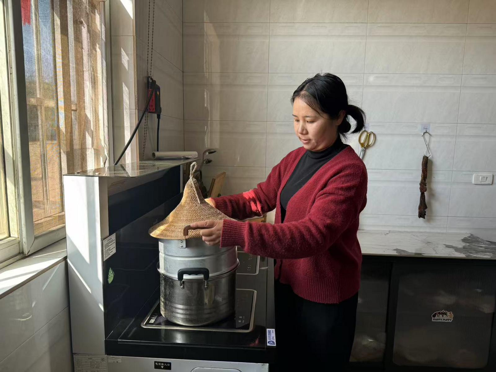 “以前我们是烧柴的,不卫生,到处都有灰。用电灶之后,电灶非常干净,还有自带抽油烟机,油烟都可以抽出去,做饭时间也很快,比以前土灶都方便很多。”村民普艳萍说。