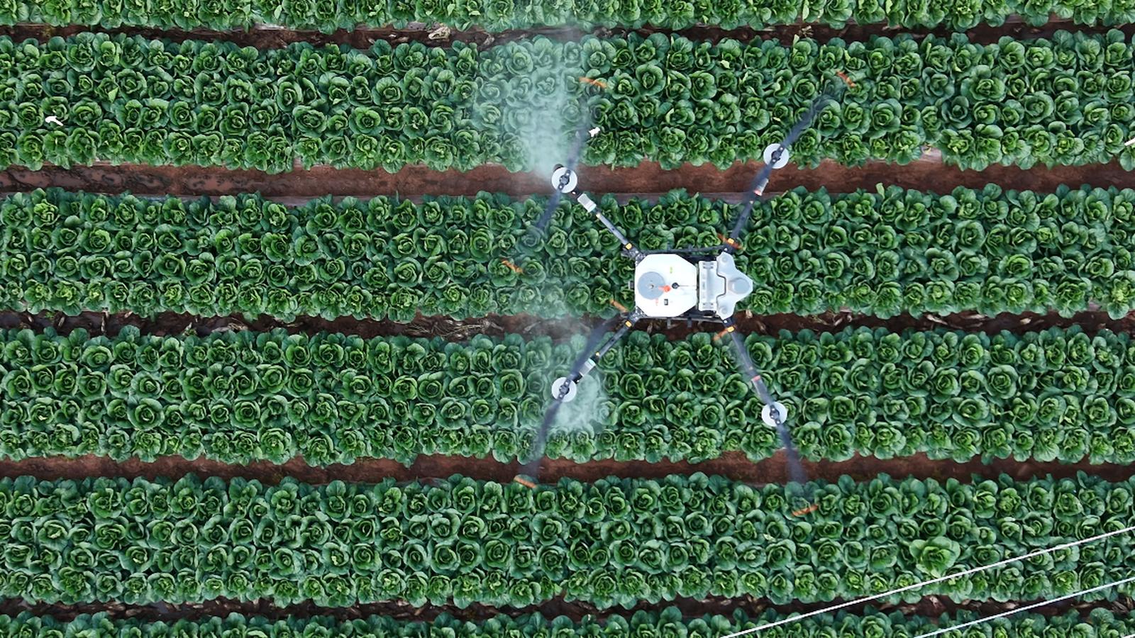 在种植基地,工作人员操作植保无人机,将生物制剂均匀喷施在白菜叶面,开展高效绿色防控作业。此次试验覆盖 100 余亩连片白菜,县农业农村局通过示范应用,筛选绿色高效、安全可行的病虫害防控模式,引导农户转变传统用药习惯,加快绿色防控技术落地推广。