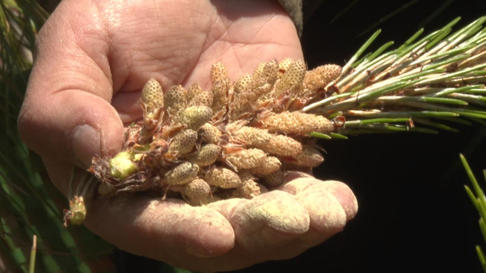 春和景明,通海山间的松林郁郁葱葱,松花缀满枝头,微风拂过,花粉漫溢林间,一年一度的松花采摘季如期而至。3月26日,央视《走遍中国》栏目摄制组走进通海,用镜头定格松花采摘、松花糕制作的全过程,解锁藏在大山里的春日限定美味。