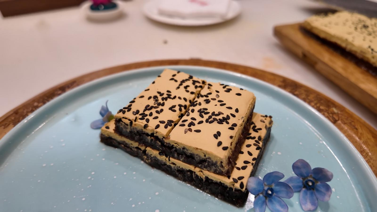 新鲜松花经筛粉、晾晒、除杂、消毒后即可使用。在普绩的熟练操作下,处理好的松花粉搭配上红豆沙、蜂蜜等食材,一份松花糕很快制作完成。松花糕是通海春日标志性美味,制作过程最大程度保留松花天然清香,承载着当地民俗与非遗内涵,是人与自然和谐共生的美味体现。